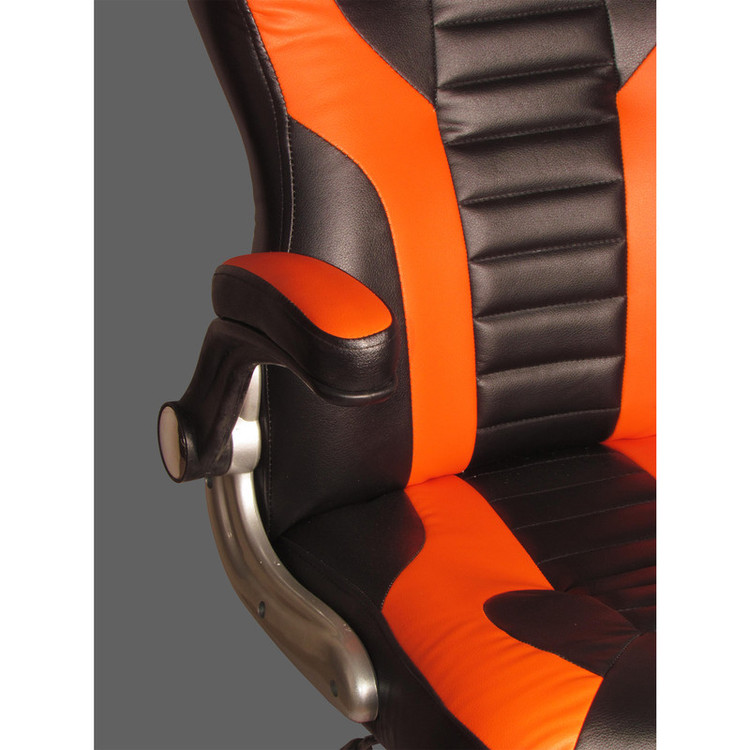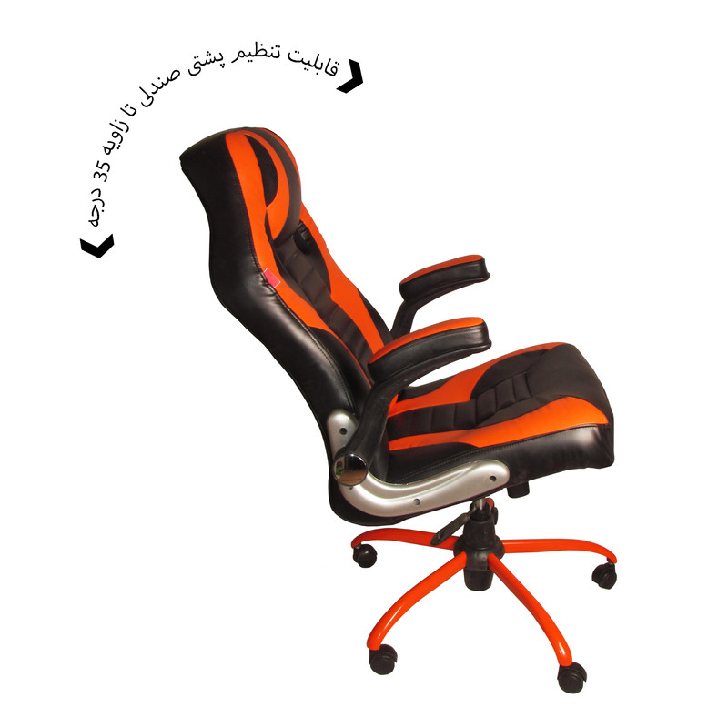 اگر شما علاقمند استفاده طولانی مدت از کنسول، بازی های ویدیوئی و کامپیوتر شخصی خود هستید، نیاز به یک صندلی نرم و راحت، ارگونومیک و طبی دارید که شما را از خستگی و دل زدگی استفاده طولانی مدت حفظ کند و سلامت بدنی شما تامین گردد. این صندلی در اولین نگاه شما را مجذوب ظاهر زیبا و شخصی سازی شده خود مینماید. محصولات شرکت میزیمو بر مبنای اصول ارگونومیک طراحی شده است. نوع مکانیزم به کار گرفته شده در این صندلی قابلیت تاب خوردن جهت رفع خستگی را به شما می دهد و زاویه پشتی آن تا 35 درجه قابل تنظیم است. با وجود بالشتک طبی پشت سری و ارگونومی گودی کمر، این صندلی موجب افزایش بازه پشتیبانی از شکل طبیعی ستون فقرات و گردن شده است. این محصول چشمگیر و خاص که قابل استفاده بعنوان صندلی گیمینگ و یا کامپیوتر است، با رنگ مشکی و نارنجی ، نمای زیبا و مدرنی به محیط شما می بخشد. در خرید صندلی گیمینگ، کیفیت، نشیمنگاه نرم، تکیه گاه زاویه دار و ارتفاع تنظیم شونده از ویژگی های بسیار مهم می باشد تا در دراز مدت باعث خستگی و دردهای عضلانی نشود. جنس رویه صندلی از چرم مصنوعی درجه یک می باشد که باعث ایجاد ظاهری زیبا و متفاوت شده است و استحکام بسیار بالایی در مقابل سایش های مکرر دارد که از ایجاد تغییر حالت و ترکیدگی به ویژه در قسمت نشیمنگاه در دراز مدت جلوگیری می کند و بسیار نرم و لطیف می باشد. درون این صندلی فوم گرم بکار برده شده که باعث دوام بیشتر صندلی و راحتی کاربر می گردد. همچنین این صندلی قابلیت تنظیم ارتفاع و تنظیم کفی و پشتی به وسیله ی مکانیزم را داراست. مکانیزم حرکتی این صندلی توسط دو اهرم مستقل از هم کنترل می گردد که یک عدد از اهرم ها برای تنظیم ارتفاع و دیگری برای تنظیم تاب خوردن مورد استفاده قرار می گیرد. مکانیزم ویژه استفاده شده در این محصول باعث می شود تا کاربر بتواند کنترل کاملی بر ارتفاع و پشتی صندلی در زوایای مختلف داشته باشد. این مدل صندلی قابلیت تنظیم فشارتاب خوردن پشتی صندلی به صورت پیچی، متناسب با وزن کاربر را نیز داراست. پایه های پنج پر رنگی و شخصی سازی شده در کنار چرخ های بی صدای پی یو تمام مشخصات یک صندلی گیمینگ برتر را تکمیل می کند. صندلی فوق پیشنهاد بسیار عالی برای افراد سنگین وزن و با قد بلند می باشد.